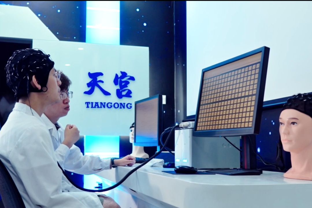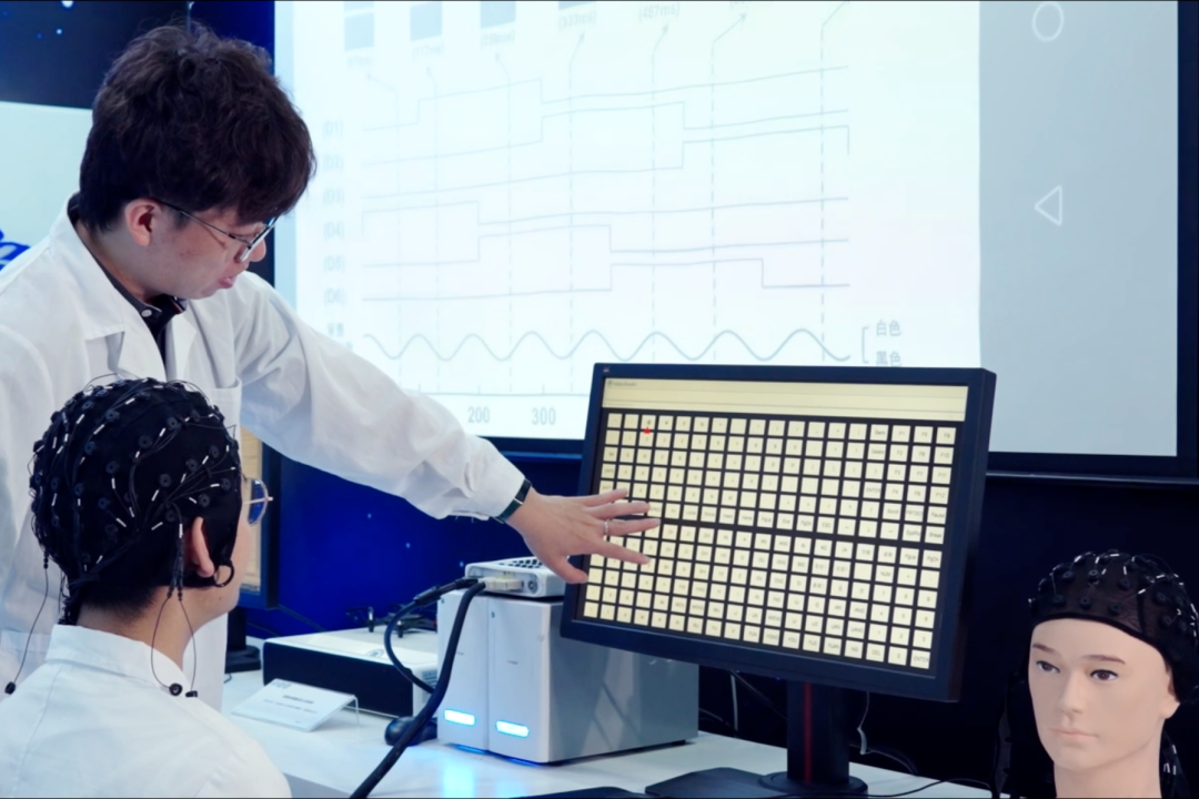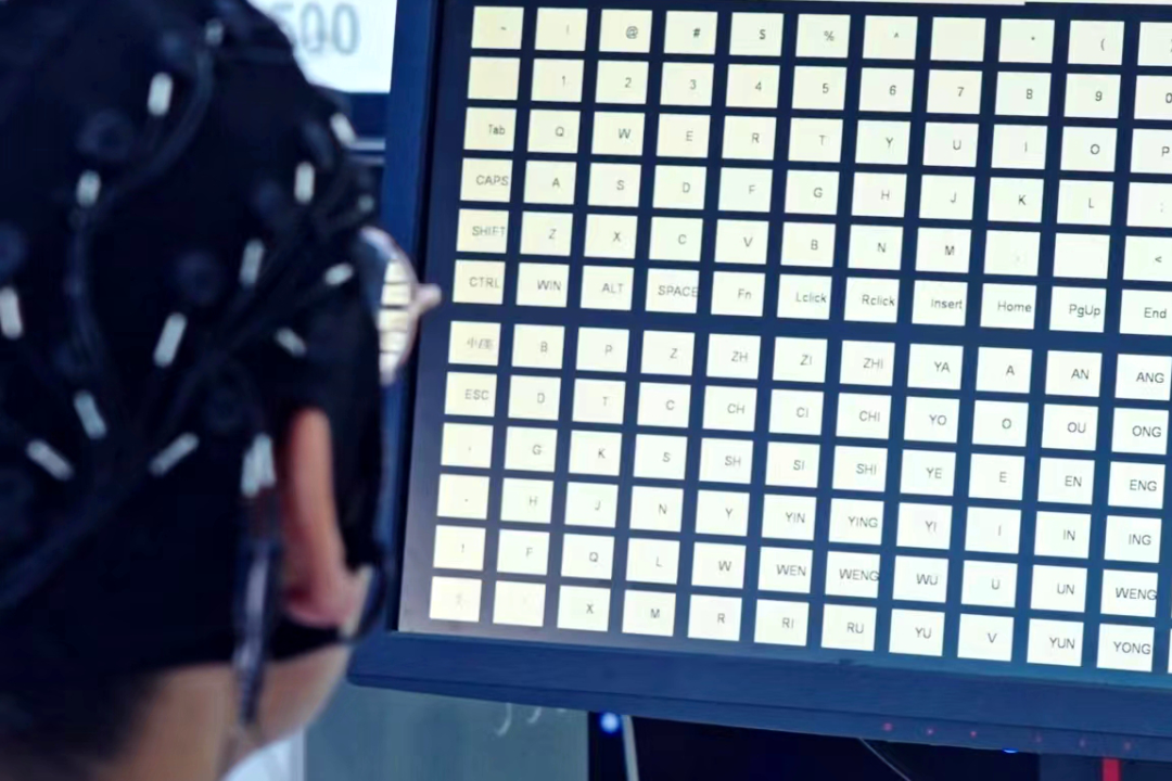 5月18日,脑机交互与人机共融海河实验室科研团队在第七届世界智能大会上正式发布具有完全自主知识产权的超大指令集高速率非侵入式脑机接口系统。使用者只需注视电脑屏幕上闪烁的216键虚拟键盘,即可通过头上佩戴的小小设备实时捕获蕴藏在脑电波中的交互信息,进而完成字符的高速拼写,实现“意念”打字。该系统创造了迄今为止国际上非侵入式脑机接口最大指令集的世界纪录。