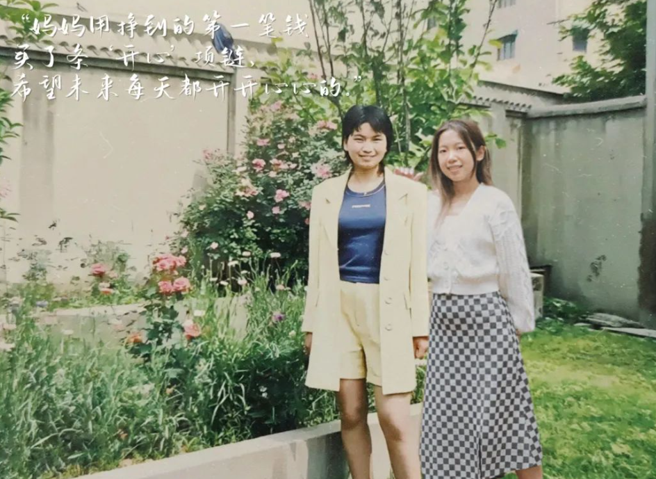 1998年春天,我的妈妈在她工作的幼儿园里拍下这张照片。那年她20岁,参与工作还不到一年,她用第一次自己挣到的钱买了条“开心”项链——两个挂坠,分别是一把小钥匙和一颗心,希望未来的每一天都开开心心的。而今我已过了妈妈当时的年纪,却总对未来迷茫无措,不过她总是温柔地对我说:“妈妈对你最大的期待,就是希望你每天都开心。”