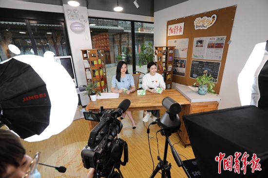5月19日,位于北京前门的中国青年报社“温暖的BaoBao青年书店”里,一场8小时的“青春云游记”大型直播活动火热展开。中青报·中青网记者 李建泉/摄