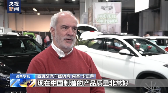 西班牙汽车经销商 何塞·卡贝萨:现在中国制造的产品质量非常好,性价比非常高。因此我觉得在欧洲,尤其是在西班牙市场很有竞争力。许多产品来自世界各地,但是大多数来自中国,因为中国在电气化技术方面的发展非常领先。