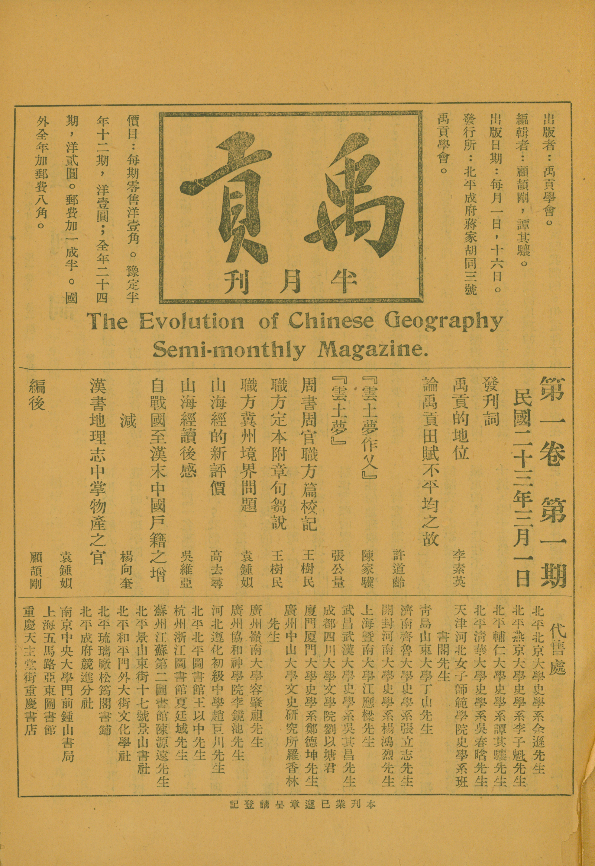 《禹贡》半月刊第1卷第1期封面