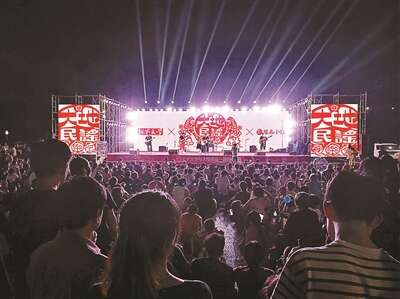台下观众大多是平谷当地中老年居民,平时很少观看摇滚或民谣现场演出。即使没有完全听懂歌词内容,但大家的情绪还是被旋律感染了。演出到中途,原本端坐的阿姨们站起身来,随着音乐节奏挥手、鼓掌。