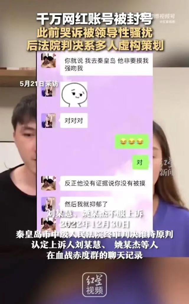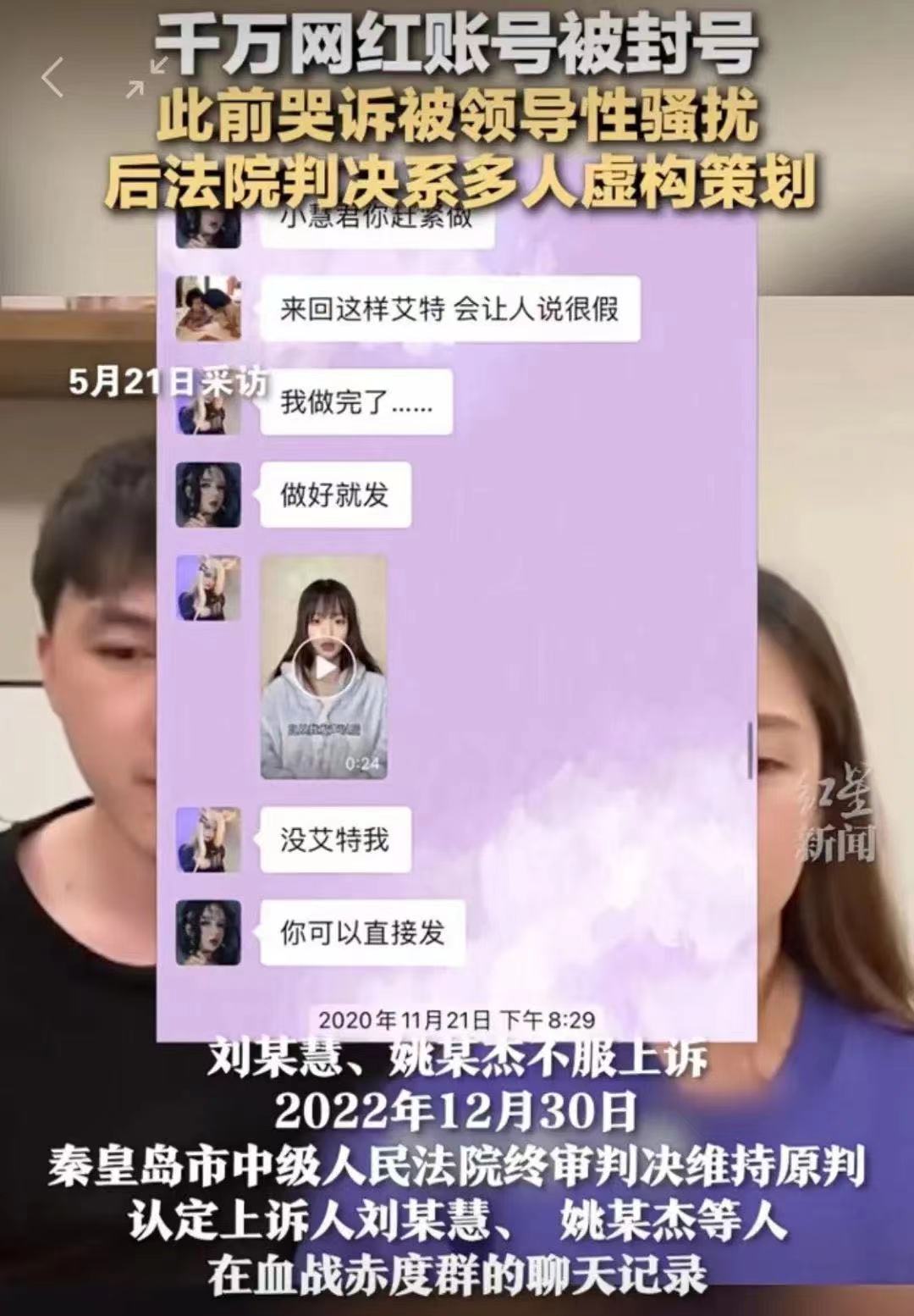 2020年10月,网红“小慧君”发视频控诉被老板长期性骚扰,并被迫签订含有霸王条款的合作协议。然而,经法院认定,刘某慧所谓“性骚扰”的指控系多人虚构策划,实则为达到“低成本”解约的目的,分别判决刘某慧和姚某杰道歉、赔偿5万元,并承担原告律师费。