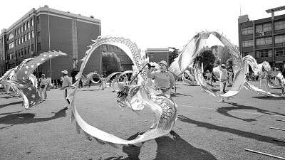 山东省枣庄市市中区,市民正在舞龙。辛秋实摄/光明图片