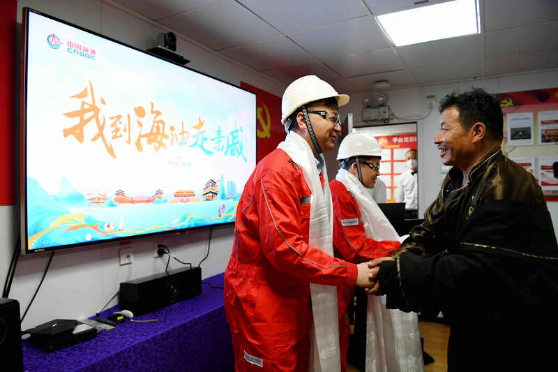 “工作和生活环境太好了,爸妈放心啦!” 55岁的贡保杰布身着藏族传统服饰,佩戴着党徽。他拍了拍儿子完么扎西的肩膀,鼓励他在中国海油努力工作,多为党和国家作贡献。“好好工作、争取入党”,海油发展工程技术分公司的罗松巴登一直记着父母嘱咐他的话。