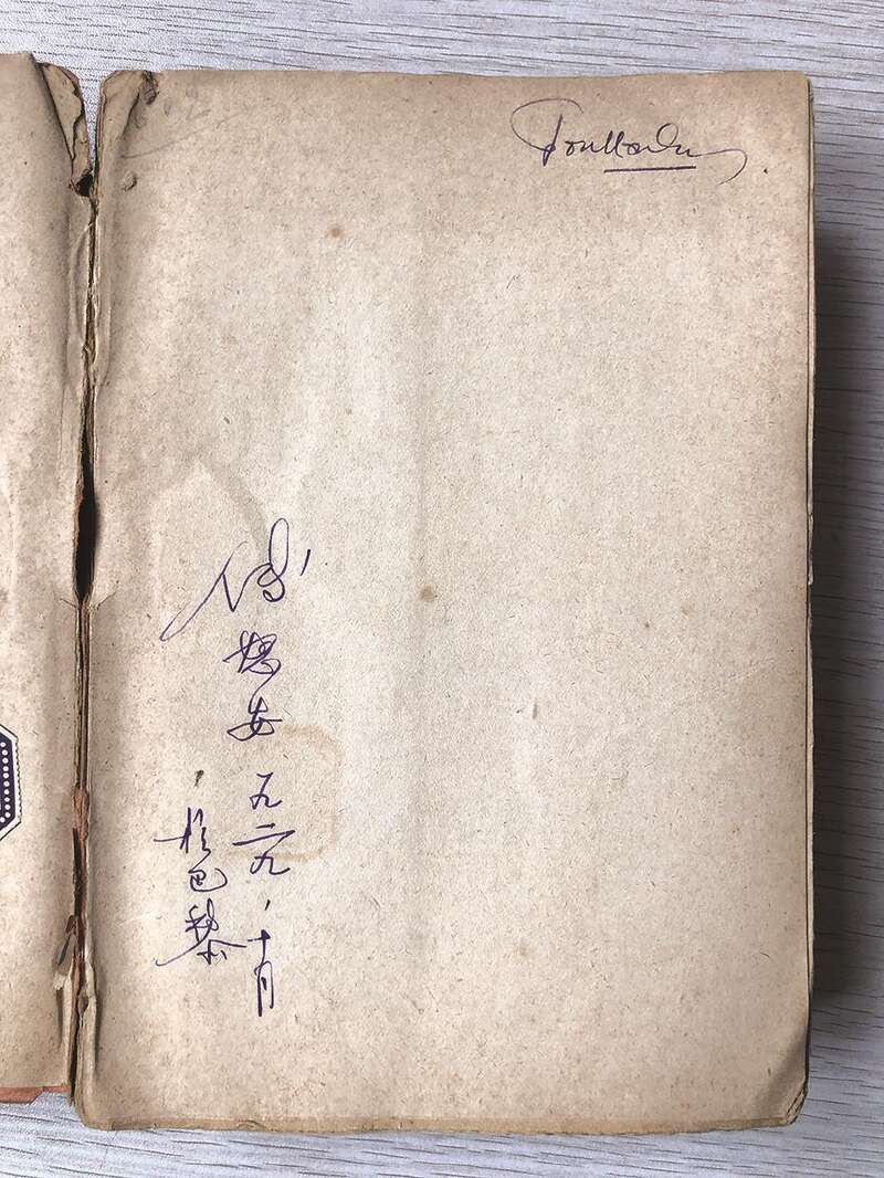 傅雷的法文签名行云流水,一时难以完全辨别。晚上回家后,急忙查阅刘志侠的《傅雷的欧洲岁月》(《新文学史料》2020年第1期)一文。刘志侠在文章中将傅雷从1928年到1931年在法国留学期间,写给他的法国好友达尼埃鲁的一些信及傅雷的一些其他的法文材料,挖掘了出来,做了集中的介绍。这中间附有一些插图,从中可以看出傅雷在信中的签名和他在笔者手上拿着的这些书上的签名完全一致。