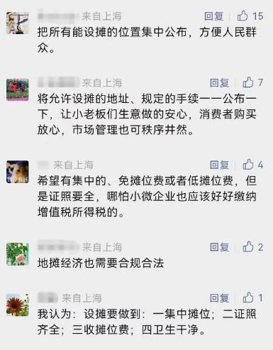 随后,徐汇、长宁等区绿化市容局也都回复表示,目前辖区内所有地方都是不允许无证摆摊的,城管看到无证摊点会进行劝阻。
