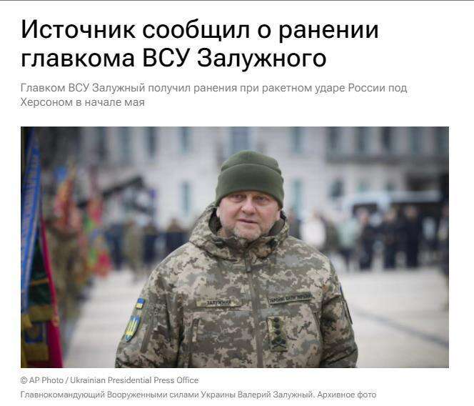 据俄新社24日报道,俄罗斯强力部门代表援引情报人员的话称,乌克兰武装部队总司令扎卢日内在俄军5月初针对赫尔松地区一指挥部开展的导弹打击中,头部受伤,并伴随多处弹片炸伤。消息还称,扎卢日内无生命危险,但可能无法履职。