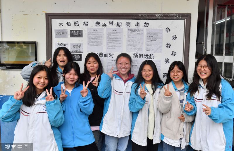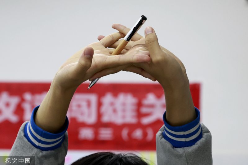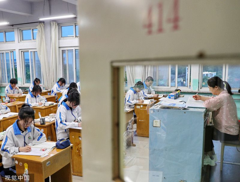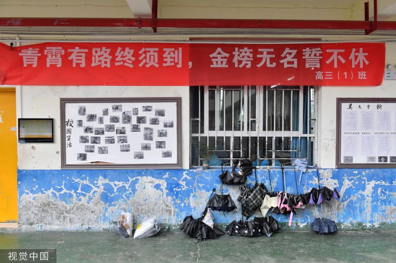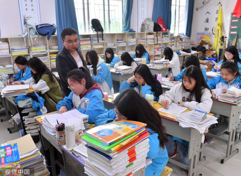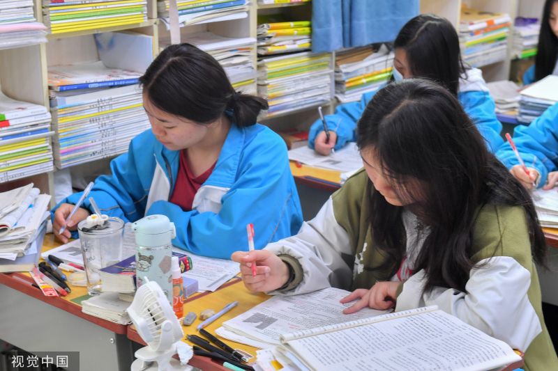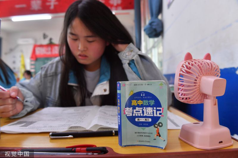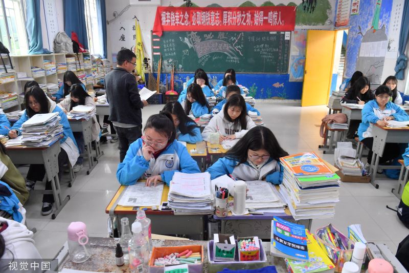 2023年5月24日,高考倒计时13天,高三的同学们做最后的冲刺,每个同学的课桌都被各种复习资料包围。