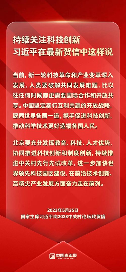 开放合作,共享未来,2023中关村论坛5月25日在北京开幕。国家主席习近平向2023中关村论坛致贺信,其中提到,人类要破解共同发展难题,比以往任何时候都更需要国际合作和开放共享;北京要在前沿技术创新、高精尖产业发展方面奋力走在前列。