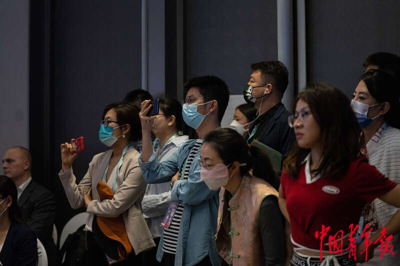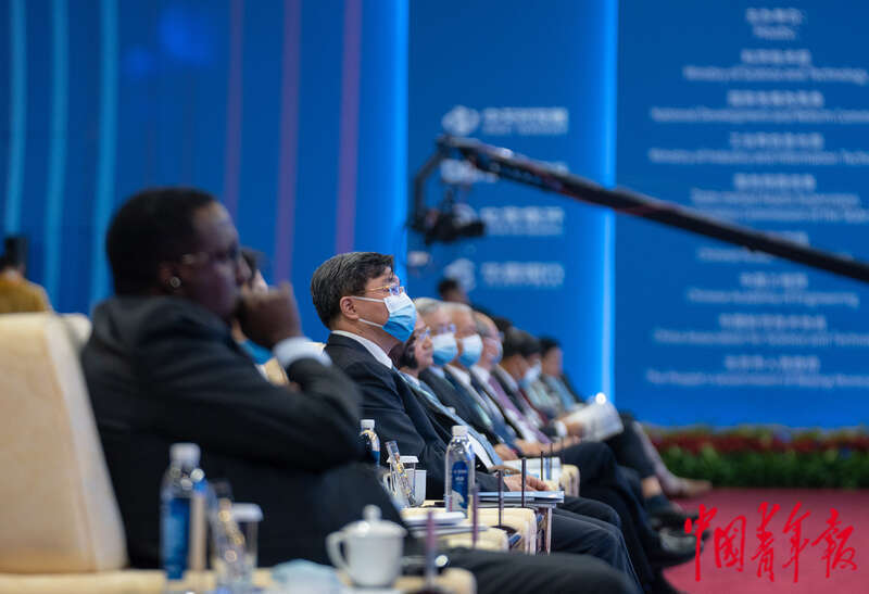 5月26日,2023中关村论坛全体大会上,中外参会嘉宾聆听嘉宾演讲。中青报·中青网记者 李峥苨/摄