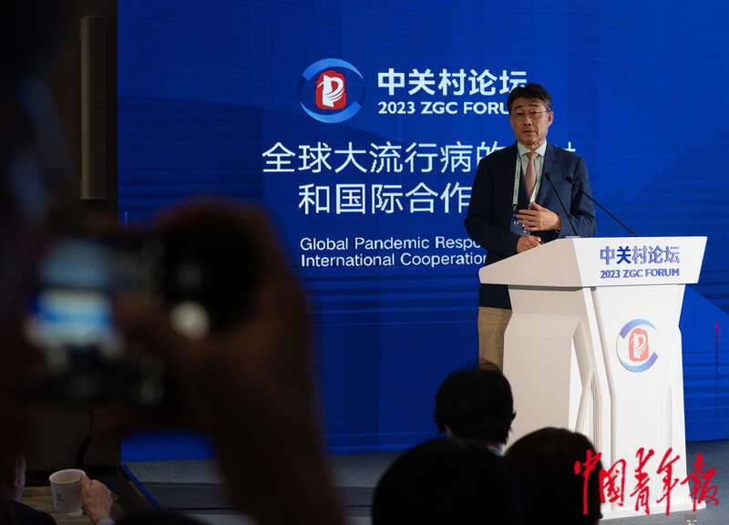 5月26日,2023中关村论坛全球大流行病的应对和国际合作平行论坛上,中国科学院院士高福作主题为《新冠防控和全球公共卫生合作》的演讲。中青报·中青网记者 李峥苨/摄