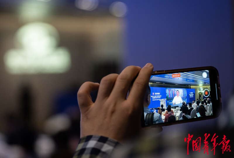5月26日,2023中关村论坛全球大流行病的应对和国际合作平行论坛上,中国工程院院士钟南山发表视频讲话,参观者纷纷举起手机拍摄。中青报·中青网记者 李峥苨/摄