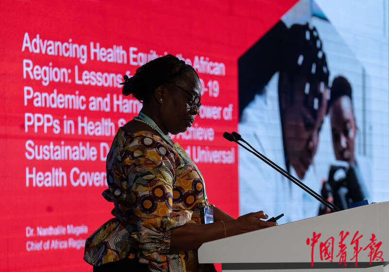 5月26日,2023中关村论坛全球大流行病的应对和国际合作平行论坛上,赞比亚帕斯适宜卫生科技组织(PATH)非洲区域负责人Nanthalile Mugala准备作《促进非洲区域卫生公平:新冠病毒大流行的教训和利用卫生系统中公私合作关系的力量来实现可持续发展和全民健康覆盖》主题演讲。中青报·中青网记者 李峥苨/摄