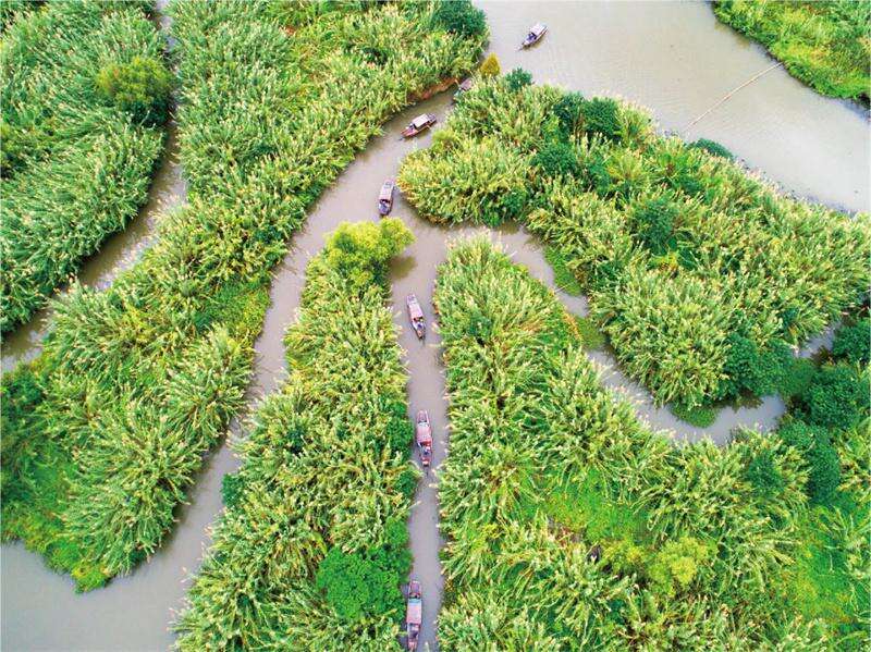 目前,公园内的野生鸟类记录已达到 157 种,比试点建设前增加了 88 种;植物记录则是达到了 720 种,对比 2013 年新增了 180 种。沙家浜借着如此丰富广袤的湿地资源,将特有的农渔文化、民俗文化、红色研学等与生态文化进行创新融合,在实现生态保护、完善生态系统的同时,又增加了经济收益。