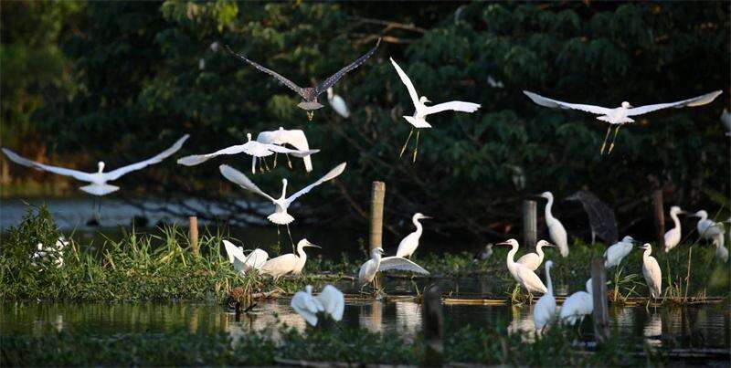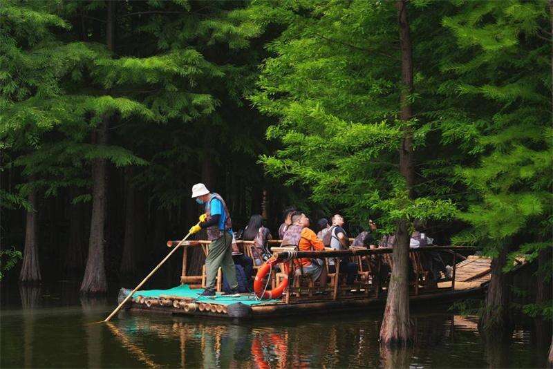 撑一叶摇橹竹筏,清风拂过,芦苇摆动,一眼望去,远处白鹭蹁跹。走进沙家浜国家湿地公园,得天独厚的良好生态环境造就了人与自然和谐共生的动人画卷。