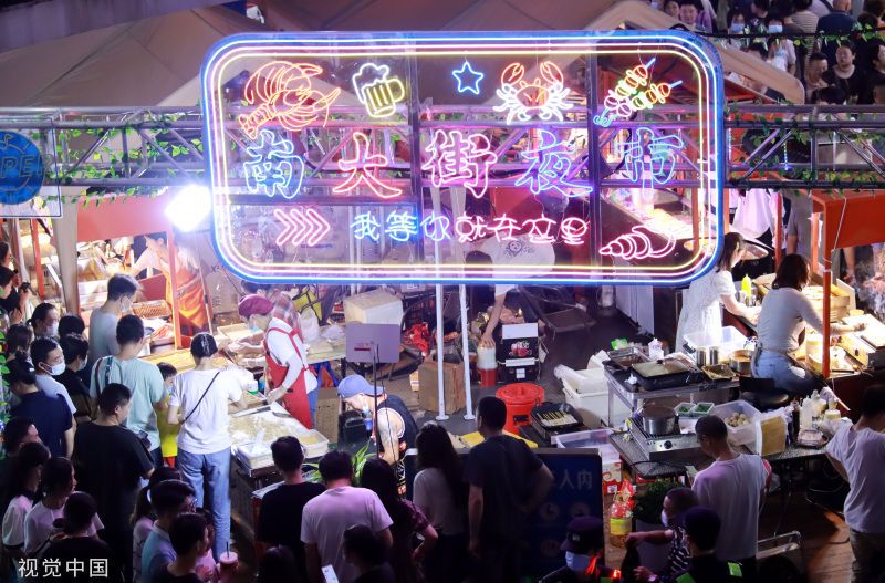 2023年5月27日,江苏常州,市民在南大街商圈“星光夜市”体验“夜经济”消费。