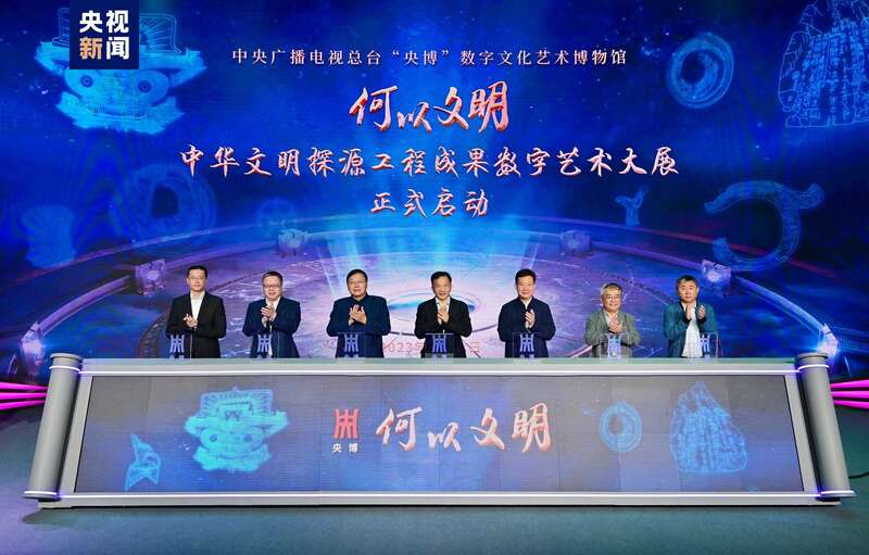 中央广播电视总台编务会议成员兼总经理室总经理彭健明致辞时表示,启动“何以文明——中华文明探源工程成果数字艺术大展”,是中央广播电视总台深入贯彻落实国家文化数字化战略、推进社会主义文化强国建设的重要创新实践。展览借助沉浸式、数字化的方式,将中华文明起源发展的历程,以及各个时期的历史场景、发明创造等展现出来,让大众更加直观、形象地体验和感受中华五千年历史文化,助推文物艺术更好地走进百姓生活。