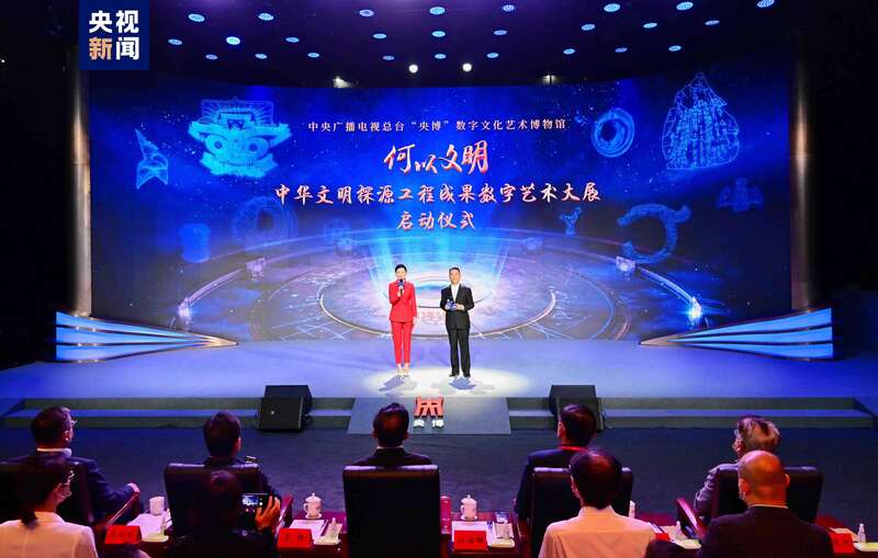 中国青年报客户端讯(中青报·中青网记者 沈杰群)5月27日,中央广播电视总台“央博”数字文化艺术博物馆“何以文明——中华文明探源工程成果数字艺术大展”启动仪式在京举行。中宣部副部长、中央广播电视总台台长慎海雄,文化和旅游部副部长、国家文物局局长李群出席,并与嘉宾共同启动展览。