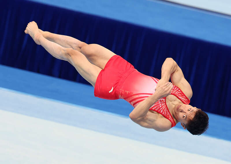 5月27日,山东省济南市奥体中心东荷体育馆,2023年“山体集团杯”全国体操锦标赛男子自由体操冠军获得者山东队的葛士豪在比赛中。刘占崑/摄