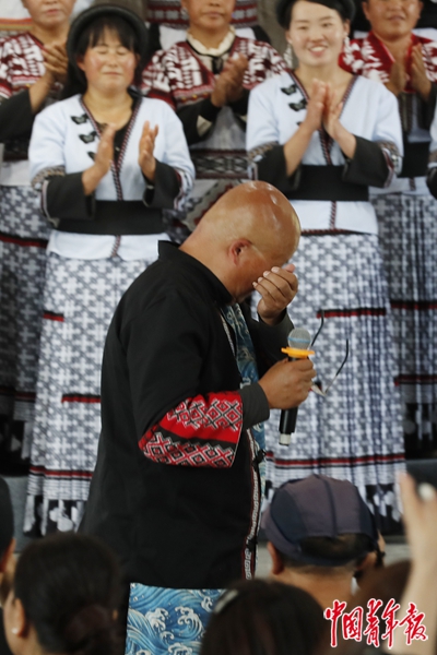 当台上的演员和台下的观众相互挥手告别时,张晓明不禁潸然泪下,哽咽难言。