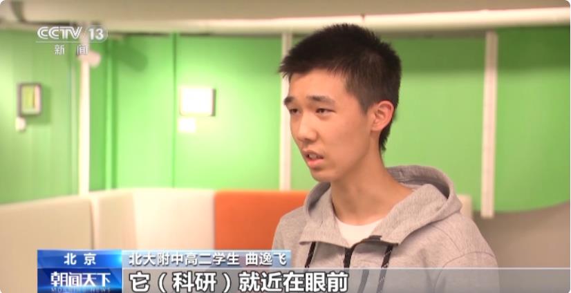 北大附中高二学生 曲逸飞:同学们觉得科研曾经是一个离自己很远的事情,但是现在发现,它就近在眼前。