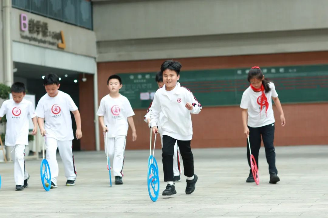 在谢家湾学校,每天每个孩子都有1节60分钟体育课,1.5至2小时户外运动时间。20余个专业运动队常态开展训练,70余个体育类社团、100余个体育专题活动供孩子们自主选择参与。