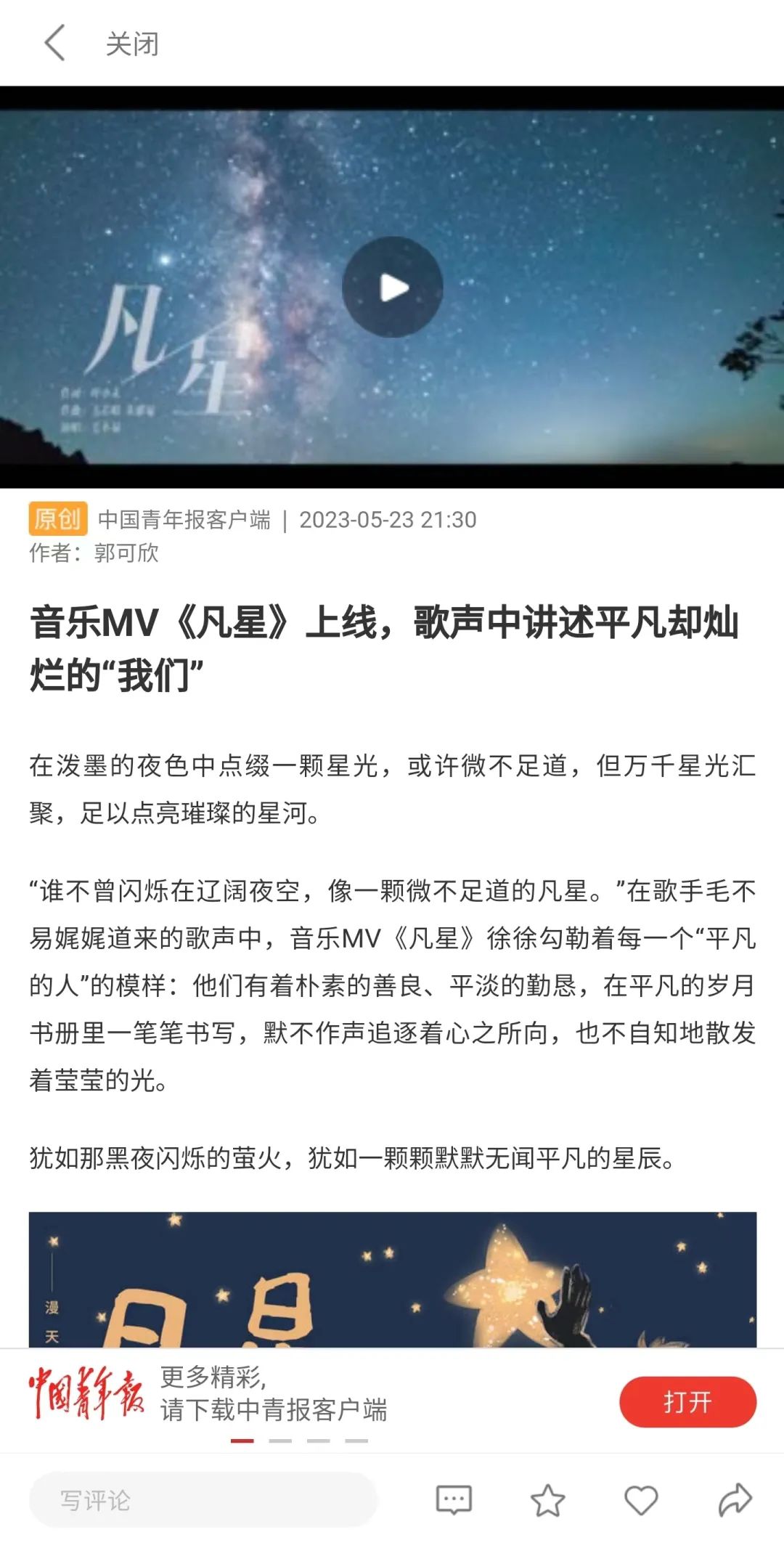 收听毛不易新曲《凡星》