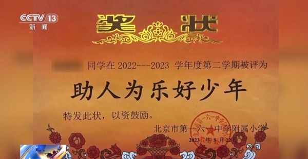 对于小男孩的举动,他的学校也特意为他颁发了奖状,评选他为“助人为乐好少年”。这对母子的举动感动了许多人。