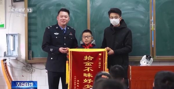 经过失主现场清点,所有东西一样不少。2月27日上午,失主吴先生和民警一起来到钟一瑁所在的学校,送上了一面锦旗和《表扬信》,表扬他拾金不昧的行为。