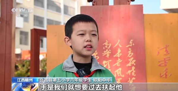 江西省赣州市会昌县第五小学六年级学生 欧阳中华:那个时候我和我的小伙伴看到一个小朋友倒在地上,于是我们就想过去扶起他。