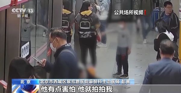 北京市西城区展览路医院麻醉科主治医师 彭赛:他发现有一个阿姨掉东西了,他一看手机掉了,他想帮阿姨捡,但是他后来看阿姨倒在地上,可能阿姨倒地上抽搐他有点害怕,他就拍拍我。