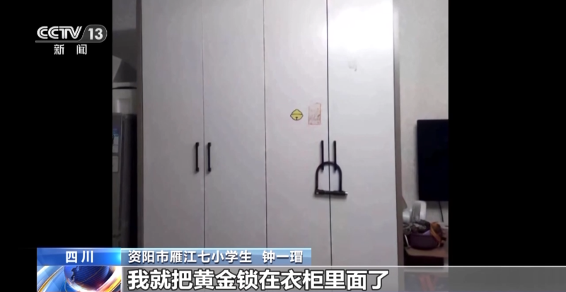 钟一瑁:下午要上学,我就怕金子被别人拿走,我看旁边有一把锁,就把黄金锁在衣柜里面了。