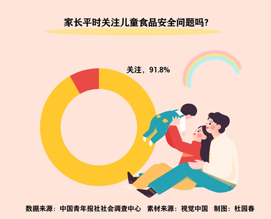 本次调查显示,91.8%的受访家长平时关注儿童食品安全问题。