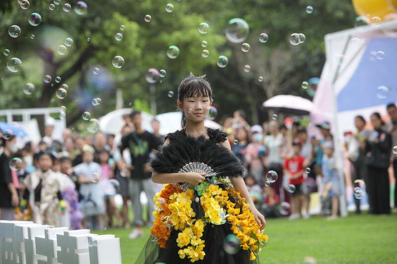 活动现场,小朋友的花艺服装秀。主办方供图