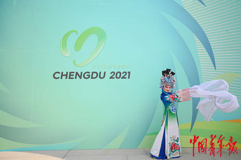 5月30日,四川成都,成都大运会志愿者誓师大会上,表演《天府成都》的演员在活动结束后拍照留念。当日,“同心同行迎大运·青春梦想正起航”第31届世界大学生夏季运动会志愿者誓师大会在成都大学举行,500名志愿者代表庄严宣誓,向世界发出 “成都准备好了”的郑重誓言。汪龙华/摄
