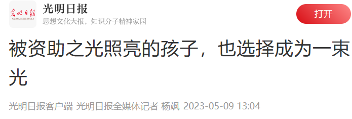 正如这句话所说:自己淋过雨,总想为别人撑一把伞。一批批在资助中成长起来的孩子,无畏逆境,他们的人生被点亮,所以他们选择成为一束光,照亮更多人前行的路。
