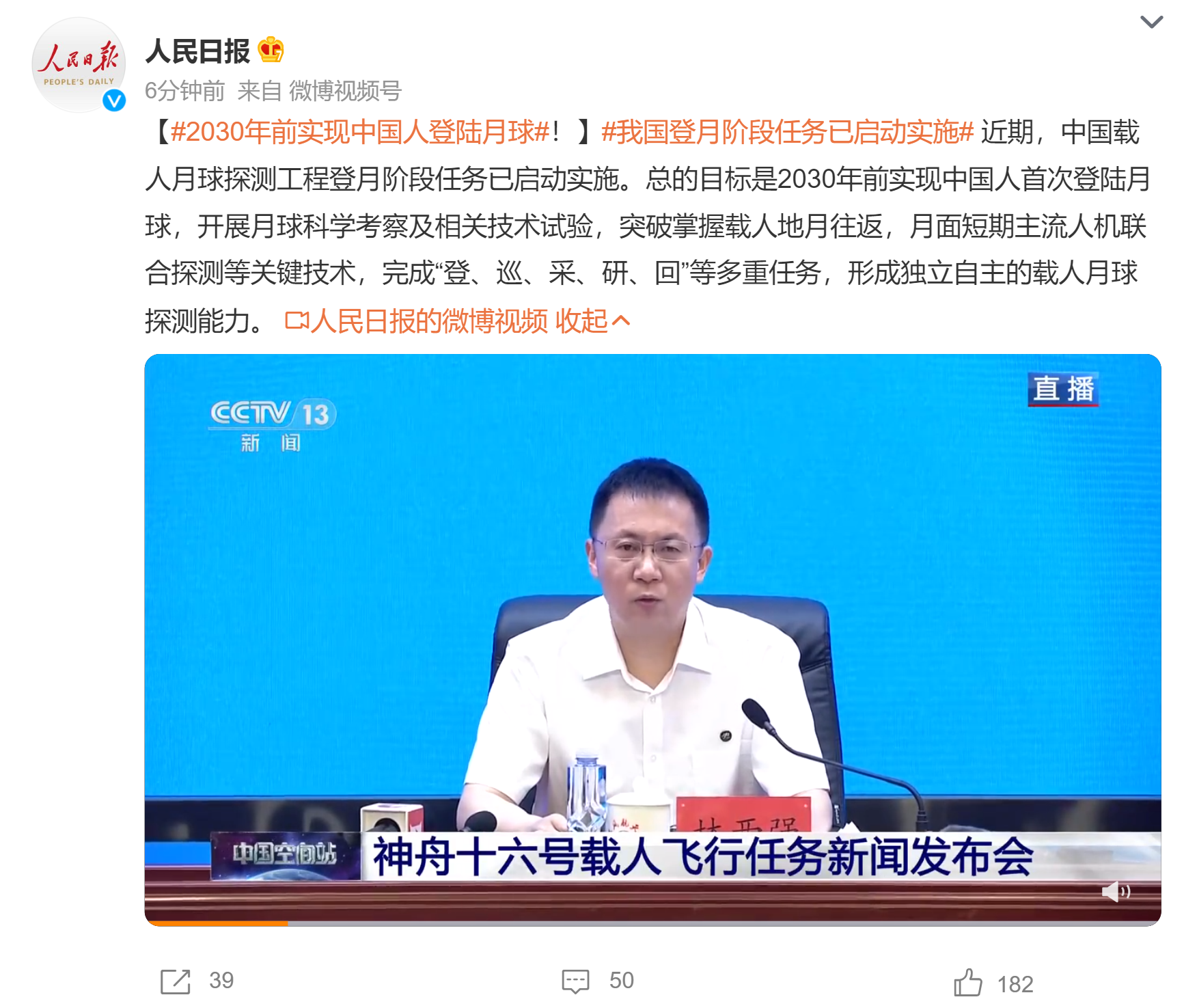 近期,中国载人月球探测工程登月阶段任务已启动实施。总的目标是2030年前实现中国人首次登陆月球,开展月球科学考察及相关技术试验,突破掌握载人地月往返,月面短期主流人机联合探测等关键技术,完成“登、巡、采、研、回”等多重任务,形成独立自主的载人月球探测能力。