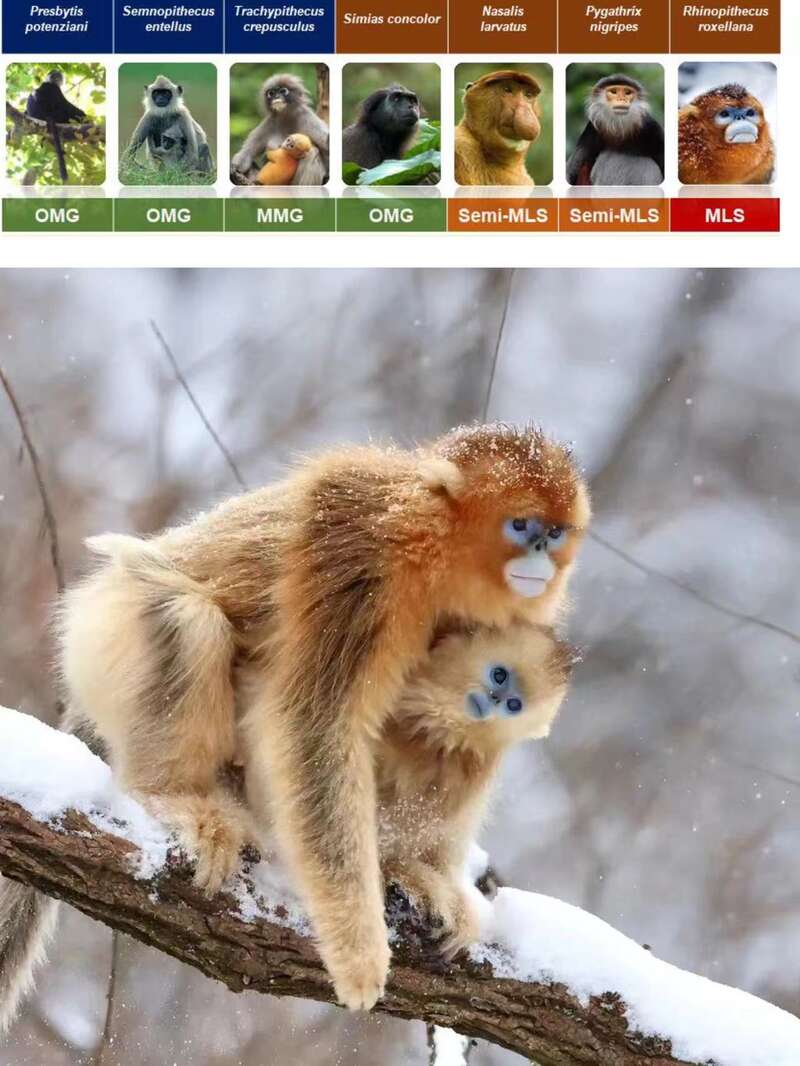 为什么选择亚洲叶猴作为研究对象?科学家也给出了最好的解答:亚洲叶猴属于旧大陆猴疣猴亚科,共七属55种,包含“一夫多妻”的单家庭社会、“多夫多妻”社会、重层社会和类重层社会4种不同的社会系统类型,从热带雨林到温带雪山地区均有分布,团队认为这个类群是研究灵长类社会进化机制系统很好的模型。