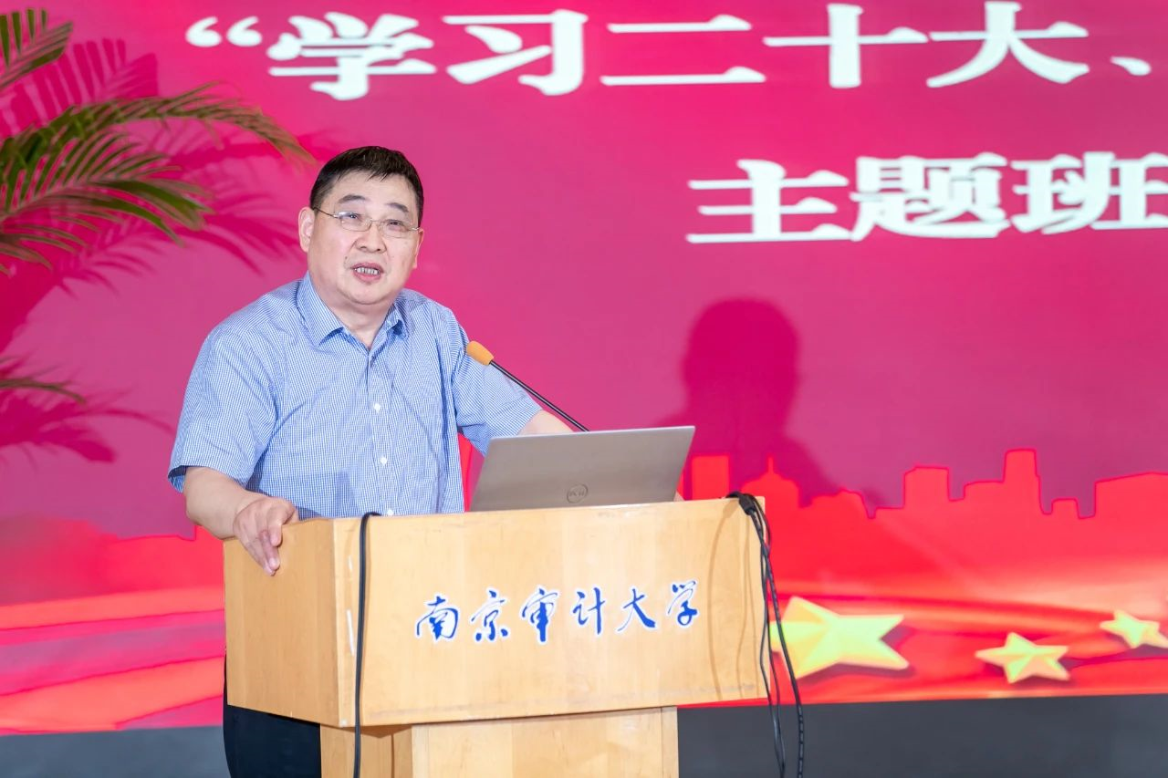 班会围绕新时代十年的伟大变革、新时代新征程中国共产党的使命任务和新时代审大青年的使命任务展开,结合优秀校友的事例,引导刚踏入人生新征程的大一学生,不负青春,勤奋学习,确立“为守护国家经济安全而读书”的理想信念,努力践行“忠诚、担当、创新、奉献”新时代审大精神。