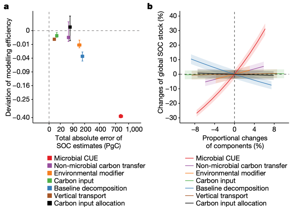 图4. 微生物碳利用效率相对其他土壤碳循环过程重要性