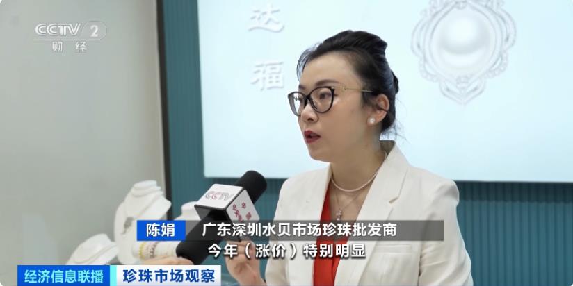 广东深圳水贝市场珍珠批发商 陈娟:从去年开始,淡水珍珠的价格就缓慢上升。今年涨价特别明显,普通的珍珠涨了30%到50%,最受欢迎的已经涨到80%左右。不单是涨,还拿不到货。