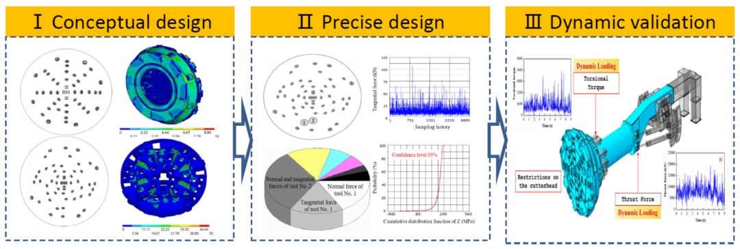 全断面硬岩隧道掘进机是地下空间开发的工程机械之王, 技术要求高,安全风险大。硬岩地质条件下其核心部件刀盘系统的结构可靠性不足是装备设计制造领域的突出问题之一,其主要原因在于对刀盘与岩体相互作用载荷时空分布规律认识不足,原有依据静载加经验阈值的设计方式存在安全风险。本项目发明了考虑动态载荷时空特性的隧道掘进机刀盘数字化设计技术,突破了硬岩冲击作用下刀盘可靠性设计瓶颈。该技术通过概念设计、详细设计、动强度校核三个核心环节,平衡了考虑动载荷影响时的计算效率与设计可靠性。项目团队基于本技术开发了相关的数字化设计工程软件系统,与装备制造企业深度产学研合作,成果已应用于包括我国首台自主知识产权的敞开式硬岩隧道掘进机在内的掘进装备设计与隧道工程建设。