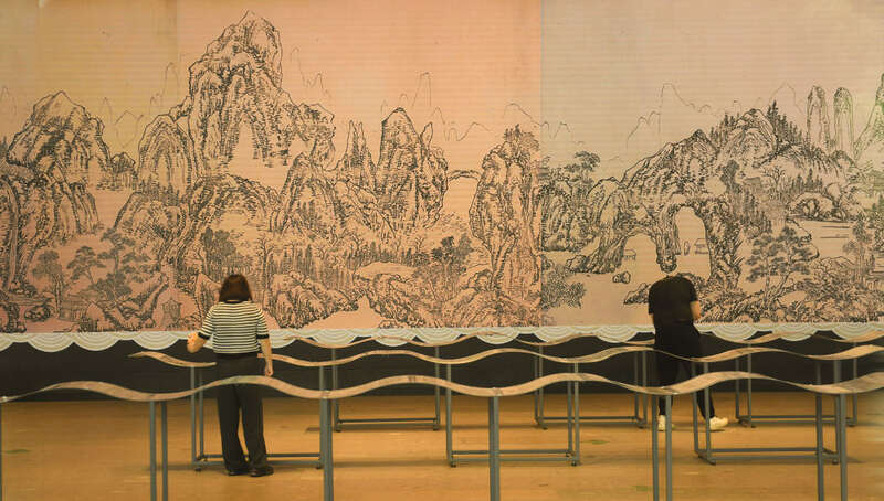↑中国国家版本馆杭州分馆展示的“盛世修典——中国历代绘画大系”收录的数字化古画(5月31日摄)。新华社记者 翁忻旸 摄