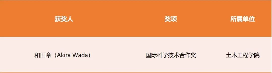 多年来与土木工程学院吕西林院士、李国强教授、陈素文教授等开展科研和人才培养合作,为培养防震减灾领域领军人才、促进中日深层次科技交流作出杰出贡献的国际建筑减震控制领域顶尖科学家、日本东京工业大学荣誉教授和田章,获国际科学技术合作奖。