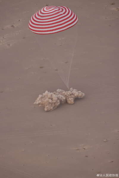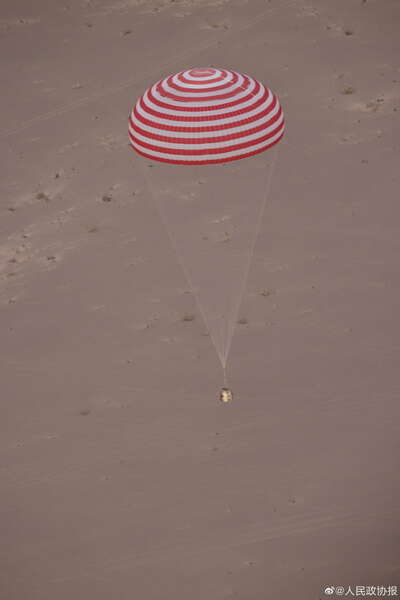 神舟十五号载人飞船返回舱在东风着陆场成功着陆