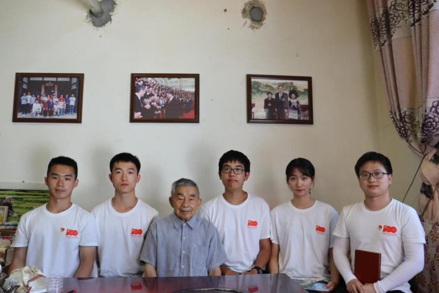 遵义社会实践期间,曹芳存(左一)与七一勋章获得者黄大发合影