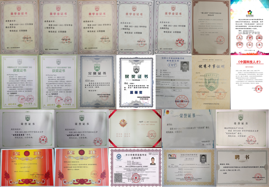 刘澍雨本科期间曾担任学生骨干并获国家励志奖学金等,并辅修了金融专业双学位,曾代表学校赢得北京高校触式橄榄球联赛年度总冠军。当兵前原本打算工作的他,退役后决定考研并顺利上岸,期间积极参加学生工作和科研工作,获得了硕士二等奖学金和校“兴农杯”创业大赛二等奖。