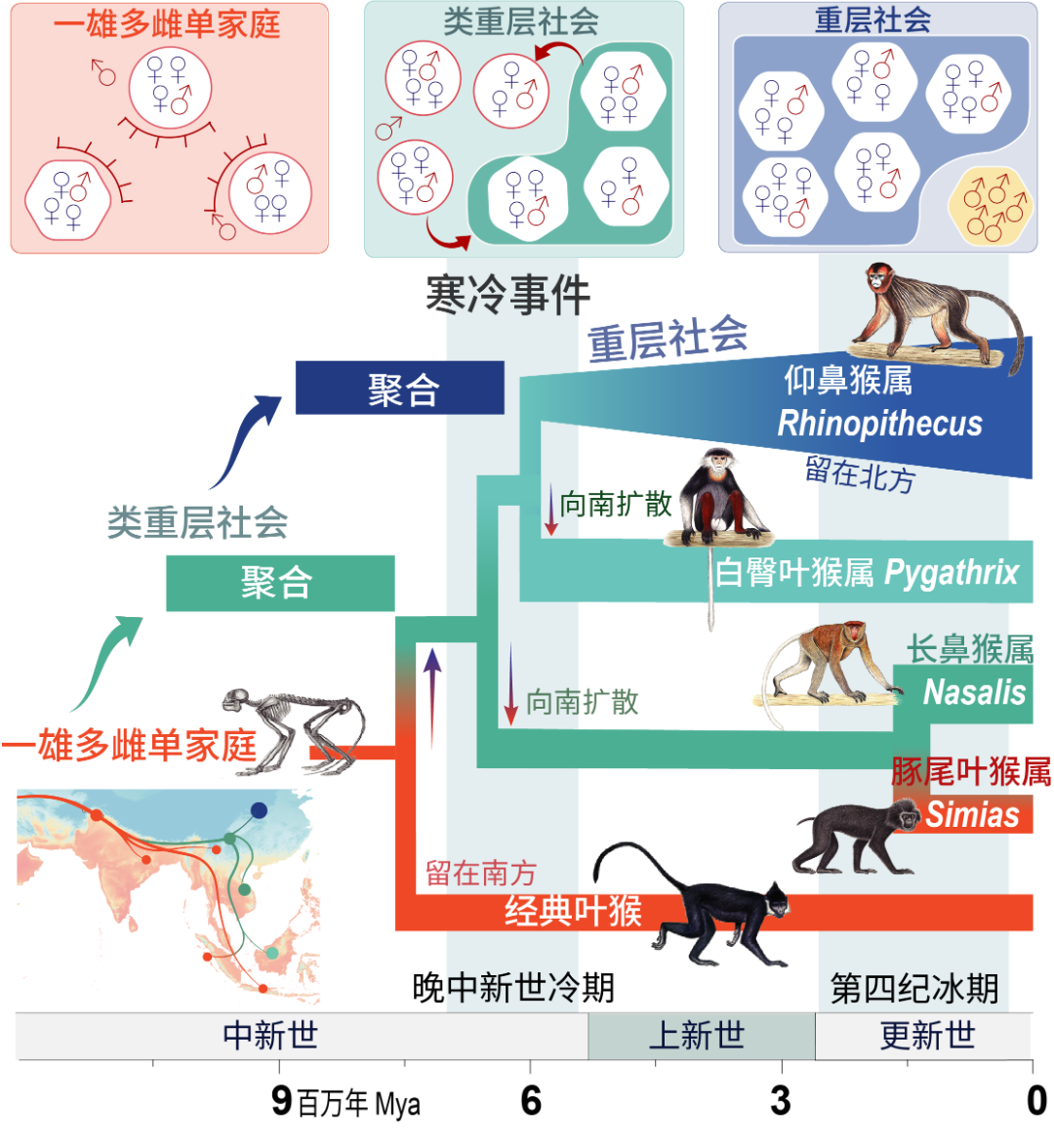 群居生活以及相应的社会行为的演变,是灵长类研究的重难点之一。近日,西北大学齐晓光教授联合多个课题组,对包括金丝猴在内的亚洲叶猴进行了自然史重建和基因组比较研究,发现寒冷气候是推动它们性情变温和,产生复杂社会群体结构的重要因素。