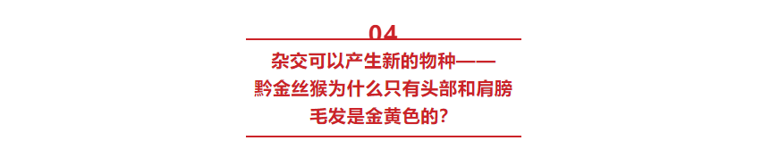 云南大学的于黎教授联合团队通过基因组分析发现,黔金丝猴是川金丝猴与滇/怒江金丝猴祖先杂交后形成的全新物种。在演化过程中与两个祖先物种形成了生殖隔离,进而成为了一个独立新物种。